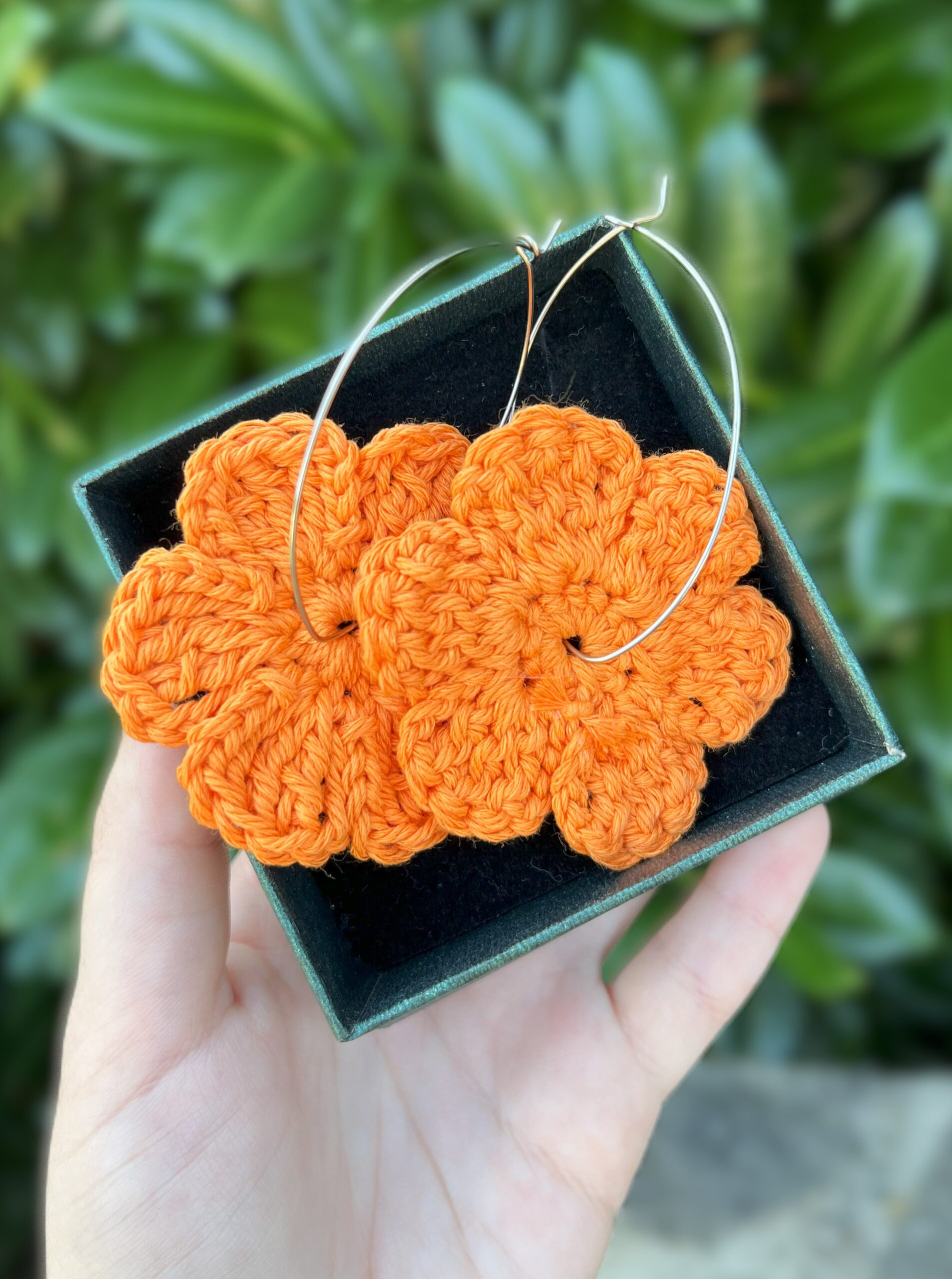 Poleti si zaslužiš barve! Ti živahni, ročno kvačkani uhani v obliki oranžnih cvetov bodo v trenutku popestrili tvoj videz. Cvetovi so pritrjeni na elegantne srebrne obroče, ki ustvarijo lahkoten in sodoben videz, primeren tako za vsak dan kot posebne priložnosti.